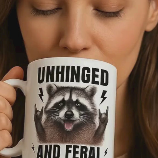 This hilarious raccoon mug brings all the feral energy you need to survive another morning. Featuring a bold “Unhinged and Feral” design, it’s perfect for anyone who runs on caffeine, chaos, and attitude.